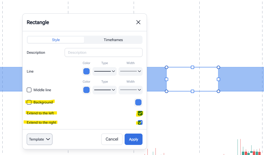 I noticed that if I remove the background colour and extend the lines left and/or right the background colour is still visible on the extended portion of the rectangle.