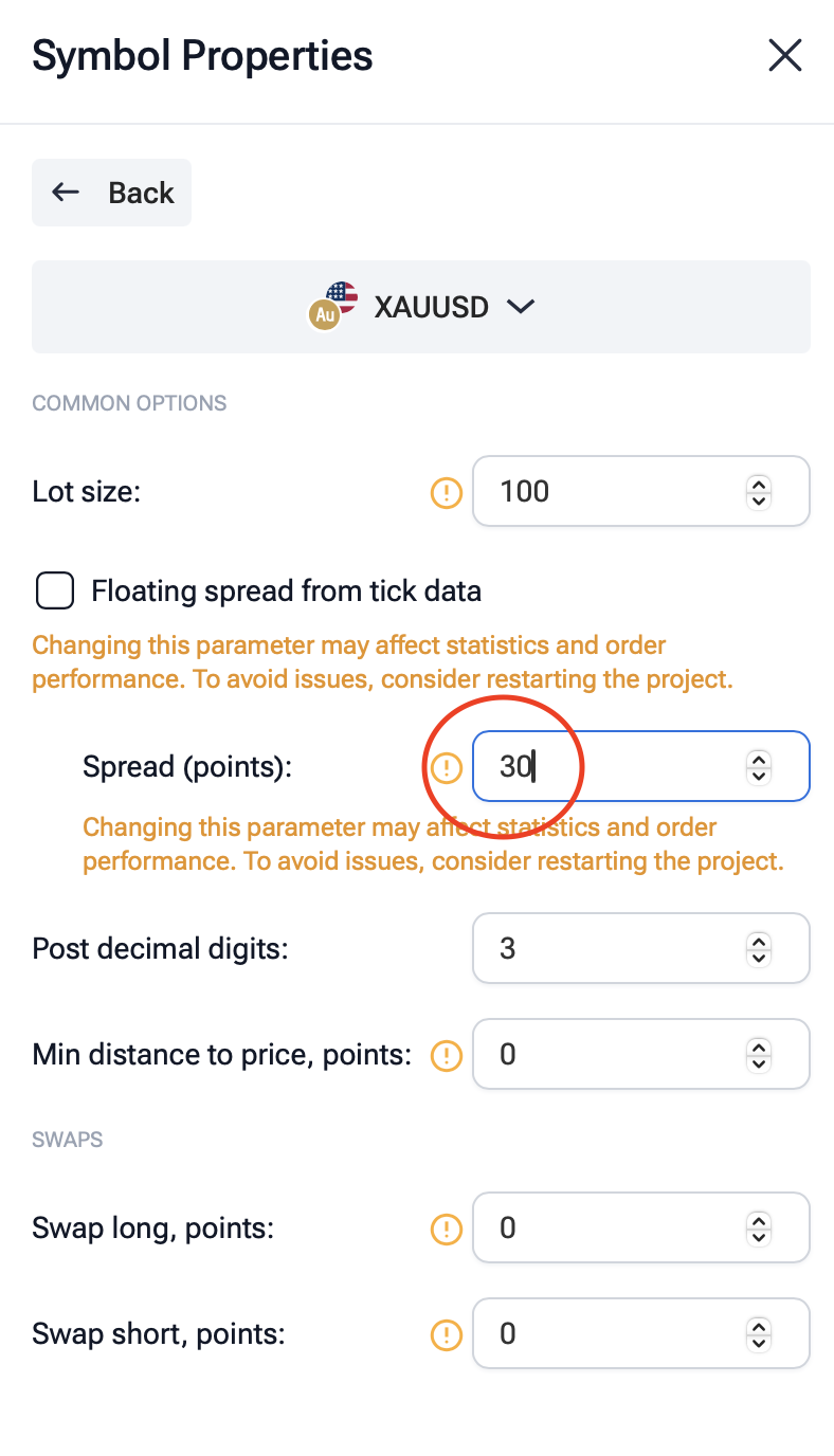 I modified the Spread in the settings, but it doesn't save. Every time I open the project, the settings revert to the default values.