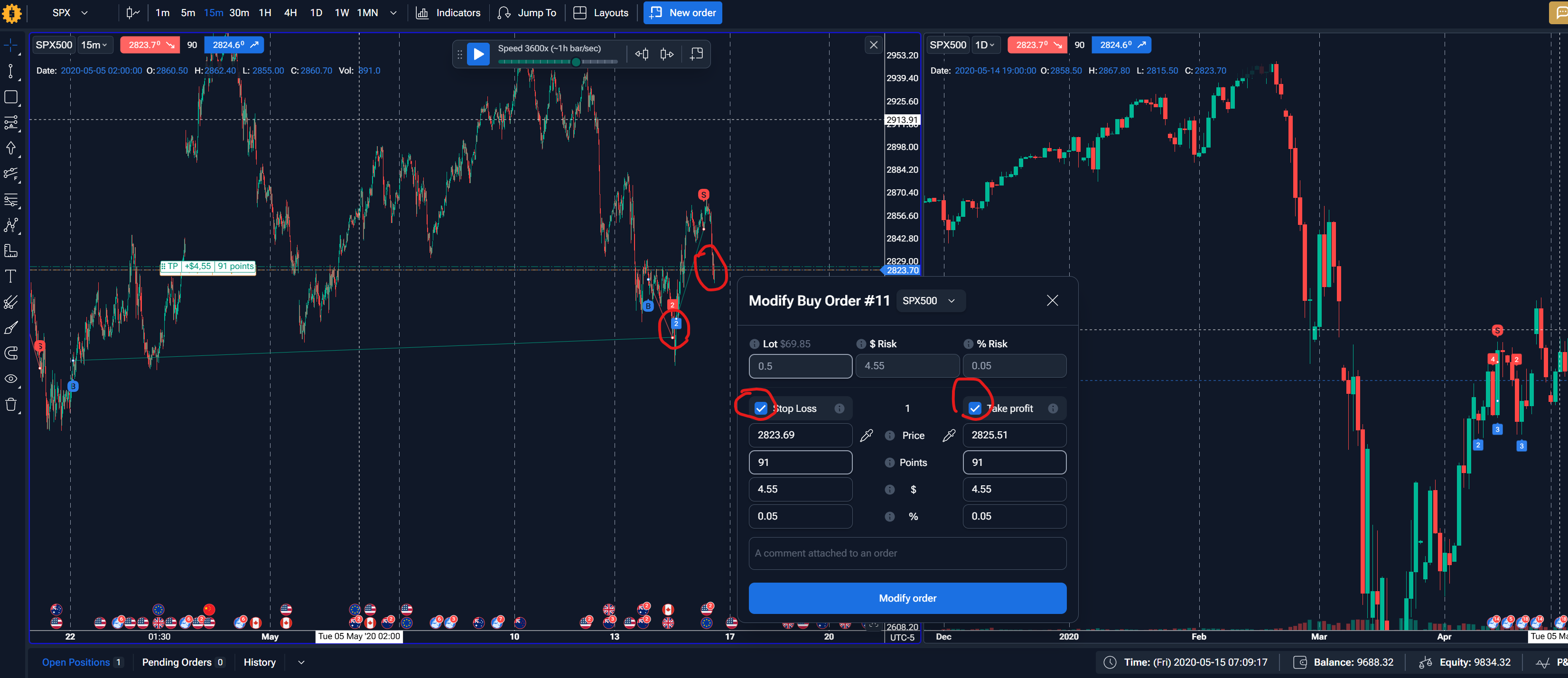 If a trade is placed without without SL/TP, and then is inserted, they appear in the current price, but the should appear on the entrance price!
